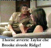 Thorne esce dall'ufficio disgustato. Taylor si reca nell'ufficio di Ridge