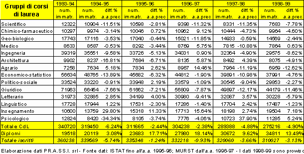 Ciò non ha impedito però che anche nell’anno accademico 1998-1999 si confermasse la tendenza, già evidenziatasi da alcuni anni, alla diminuzione delle iscrizioni.