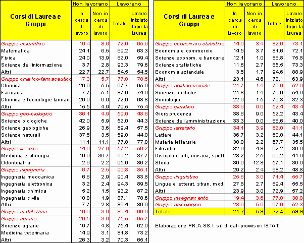 Si tratta dell’analisi della condizione occupazionale dei laureati delle università aderenti al progetto AlmaLaurea. Al momento della redazione dell’indagine gli atenei coinvolti nel progetto erano 13 ed il campione di laureati di riferimento era pari a circa 18000 unità. |