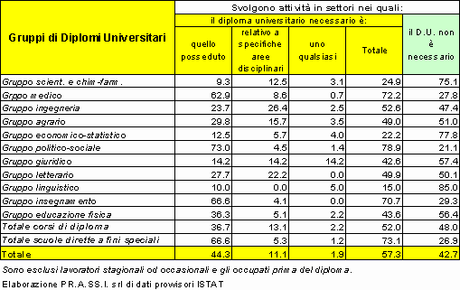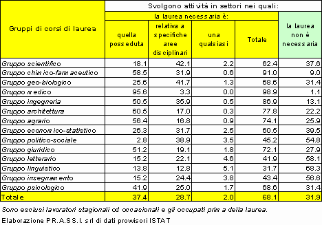 Valutazione dell’efficacia dell’istruzione universitaria rispetto al mercato del lavoro. |