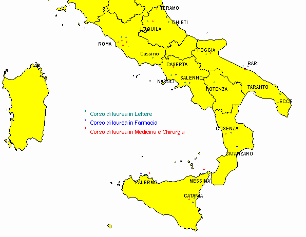 Nella Figura 5 vengono evidenziate le sedi universitarie meridionali nelle quali le ipotizzate facoltà di medicina e chirurgia, farmacia e lettere sono presenti.