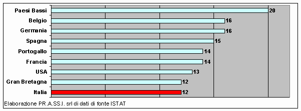 Il tasso di istruzione universitaria in Italia è più basso che in altri paesi europei, come si evince dalla Figura 1. Ciò è anche dovuto alla maggiore incidenza, nel confronto con gli altri paesi, dei corsi di lunga durata (corsi di laurea) rispetto a quelli di breve durata (diplomi universitari).