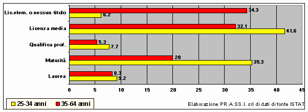 Il confronto fra il livello di istruzione universitaria e gli altri livelli evidenzia che ancora oggi (i dati riportati sono relativi al 1998) il tasso di istruzione universitaria è significativamente ridotto (v. Figura 2).