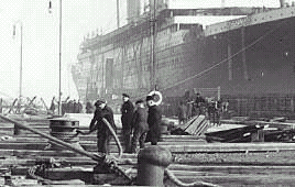 I 900 membri dell'equipaggio si dividino in privilegiati e ..... poveri diavoli ! Un ristretto numero di ufficiali gode di molte comodità, se non addirittura di lusso, come il Capitano Smith nella sua ampia suite..... l'ammasso di marinai e degli addetti alle cabine, veri proletari del mare, sono costretti a condizioni molte meno dignitose dei passeggeri della terza classe. Donne di pulizie, comerieri, cuochi, sarti, meccanici, elettricisti, insegnanti di ginnastica, fattorini, è una vera e propria città in miniatura, che palpita nella più grande nave del mondo ! Inteminabili giornate di lavoro, pessimo salario, atroci condizioni di lavoro ; il peggiore di tutti è quello dei fuochisti, tra il calore infernale e il rumore senza posa nella parte più profonda della nave (sotto la linea di galleggiamento). Durante l'intera traversata, non vedono mai la luce del sole e un corridoio speciale è stato creato in maniera tale che i passeggeri non debbano mai, nemmeno inavvertitamente incontrare le loro facce coperte di furiggine. Ora dopo ora devono nutrire l'immensa caldaia, gettandovi a palate le 7.000 tonnellate di carbone richiesta per ogni traversata ..... e che devono essere precedentemente spaccate a mano. E' a questo prezzo che i grandi di questo mondo possono sorseggiare il loro brandy sette piani sopra le onde, comodamente seduti nella loro veranda.