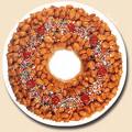 300 g di farina, 150 g di burro, 100 g di zucchero, due uova, 80 g di uva sultanina (uva passa), 100 g di gherigli di noce, 100 g di mandorle pelate, 150 g di zucchero.